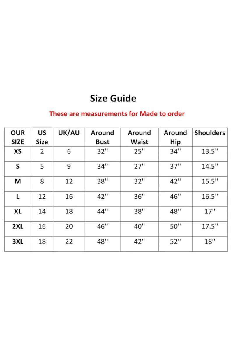 Please have a look on our size chart to get XS, S, M, L, XL, XXL, XXL dress or you can give us your own size measurements to get the dress perfectly fit on your body. After check out send us a message including your body measurement. If you don't know how to take measurements, we can help you out in it. Custom stitching takes 4-6 days. We do not accept return or exchange on stitched suits.