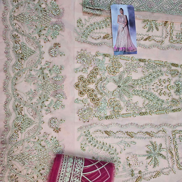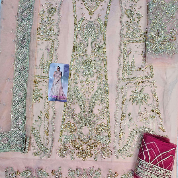 Crafted with a fusion of artistry and precision, Aria by Soraya is a bridal marvel that stands apart. The silhouette, a dance of grace, harmonizes with intricate embellishments, creating a masterpiece that transcends time. The mastery of color in the ombré lehenga and the peach net shirt, adorned with 3D detailing, ensures these heirloom pieces linger in your heart and wardrobe, promising an everlasting legacy of unparalleled beauty.