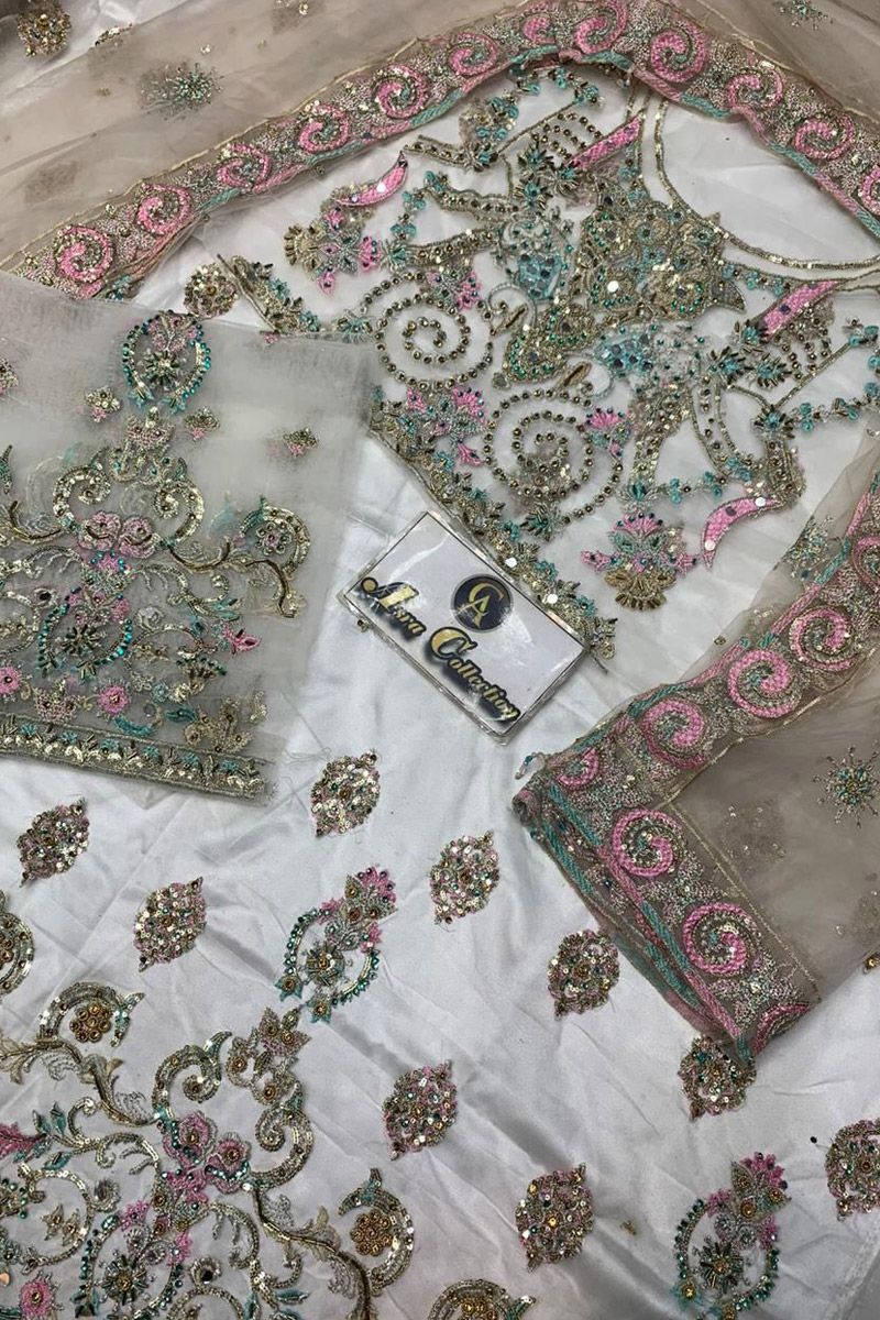Front net heavy embroidery with sequence work & stone hand work