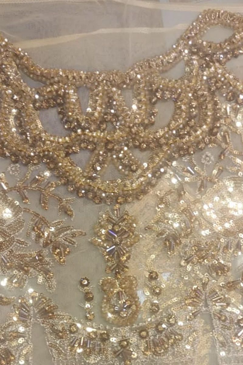 Model pictures just for references you will get the dress according to the open fabric pictures or video, color and embroidery with all embellishment