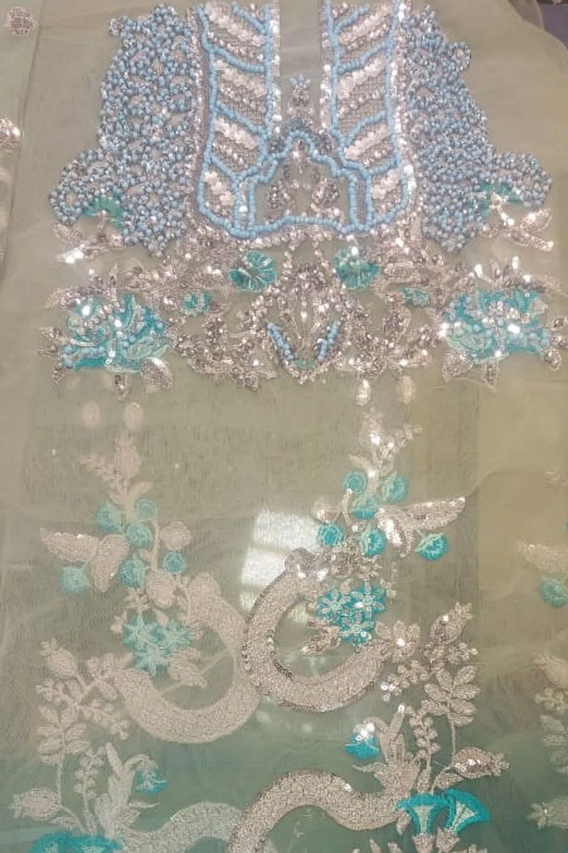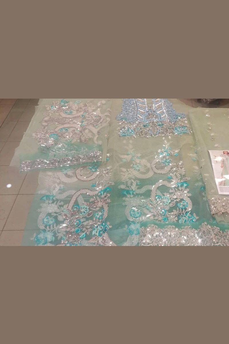 Model pictures just for references you will get the dress according to the open fabric pictures or video, color and embroidery with all embellishment