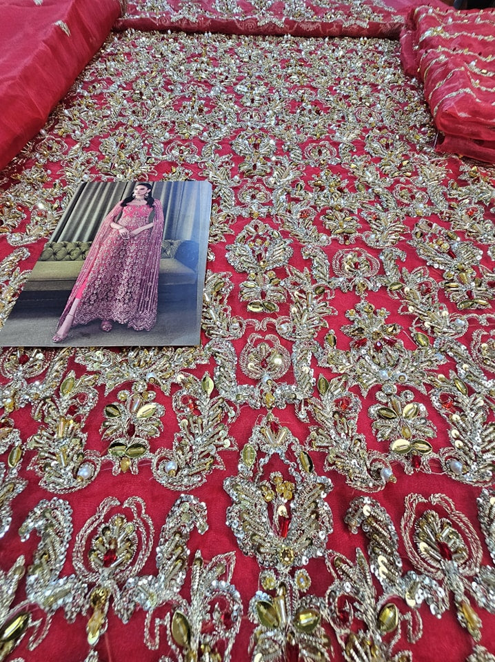 Embark on a journey to an enchanted realm with this ethereal ensemble, a fusion of fairy-like perfection and timeless elegance. Imagine a mesmerizing shocking pink long shirt adorned with intricate silvery lined motifs and a delicately scalloped hem, each detail crafted to captivate and charm. Picture cascading sequins, lustrous pearls, and glistening crystals adorning the fabric, creating a mesmerizing display of light and movement with every step you take. Completing this captivating look are cigarette pants in a complementary cherry hue, boasting side seam details that add a touch of sophistication and cohesion to the ensemble. Step into the spotlight and let your inner fairy shine with this exquisite ensemble, a testament to the boundless beauty of imagination and the enduring power of elegance.