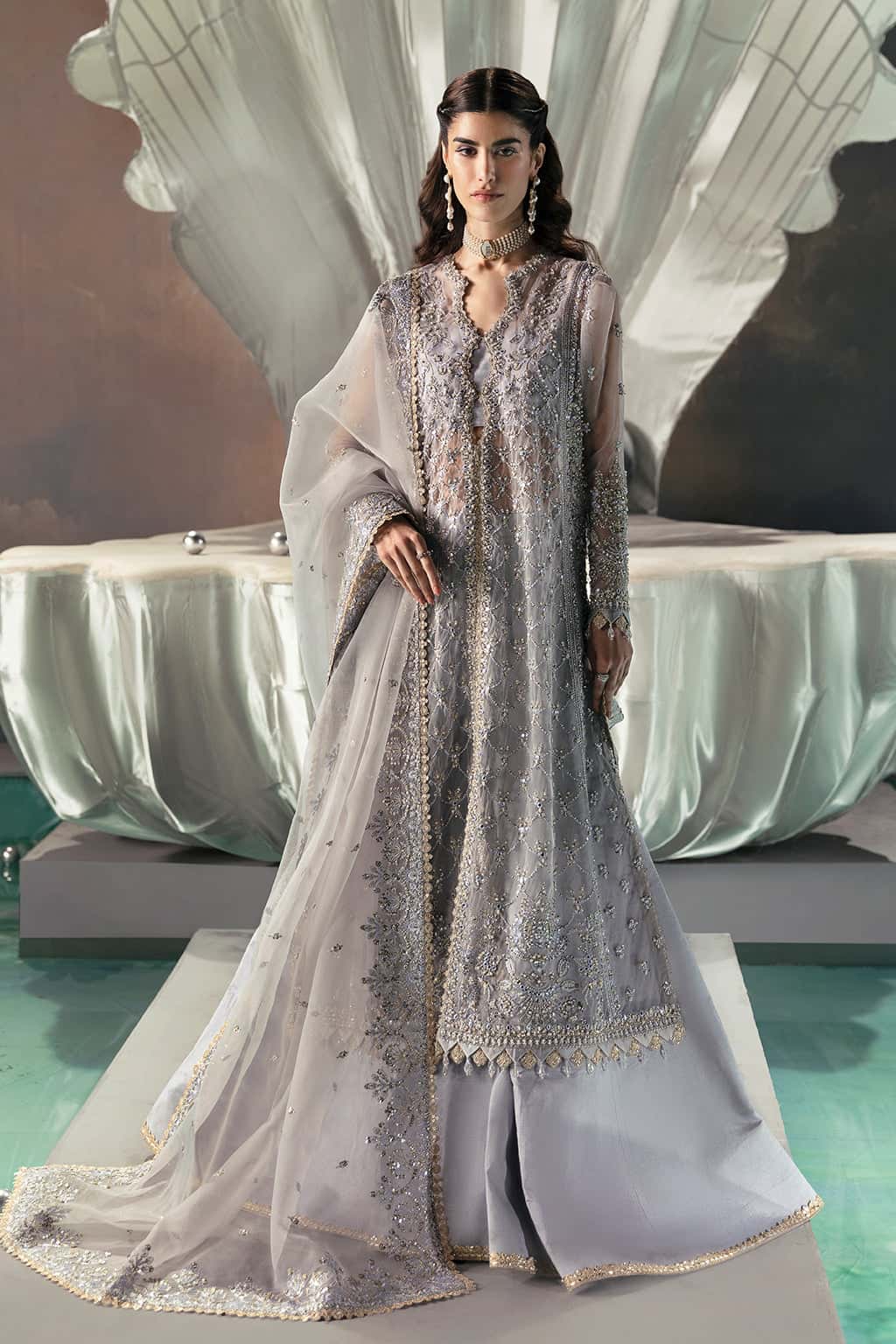 Experience the essence of festive elegance with “Leona.” The shirt showcases intricate thread embroidery with hand-worked details of delicate tilla, sequins, cutdana accents, and heavily detailed motifs on the sleeves. Paired with an organza dupatta featuring beautiful embroidered borders, this captivating ensemble promises to elevate your festive season with its stunning allure.