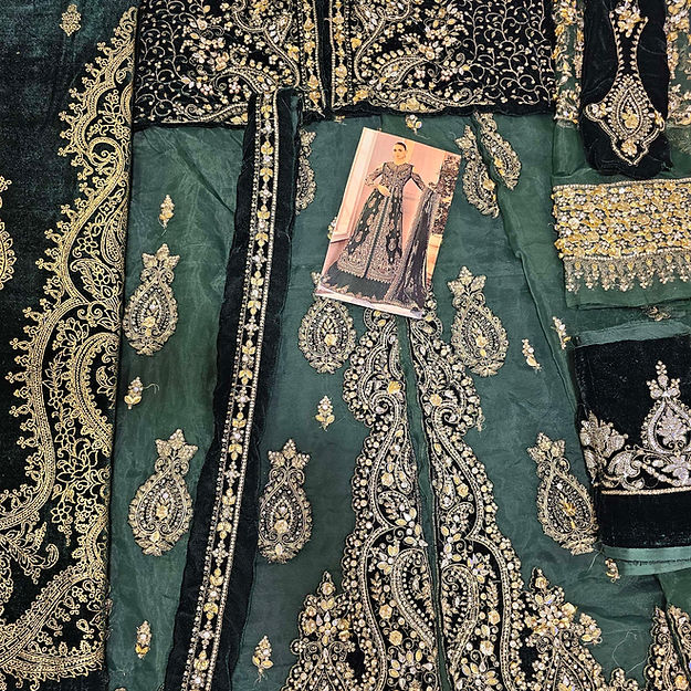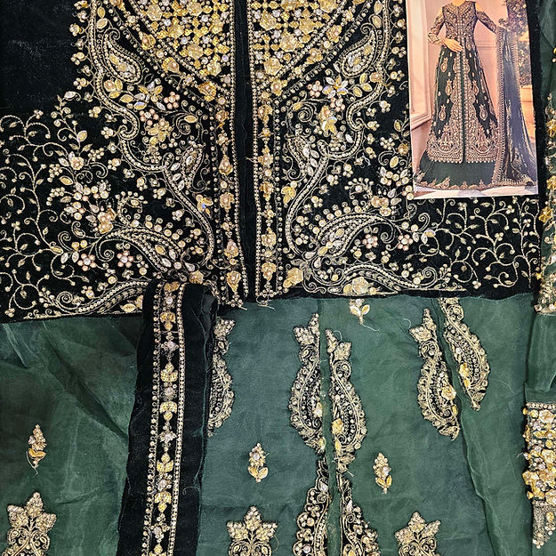 Embroidered Organza Center Panels Right With Velvet Applique & Luxury Hand Embellishment