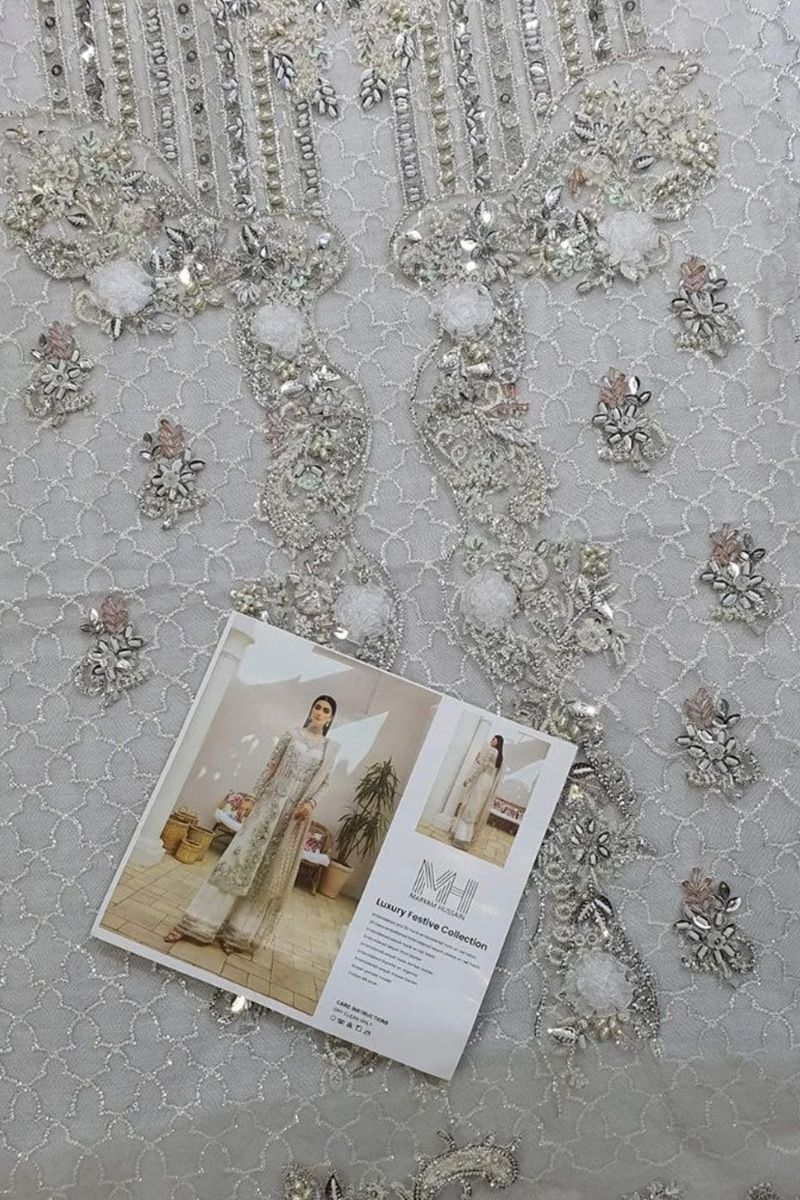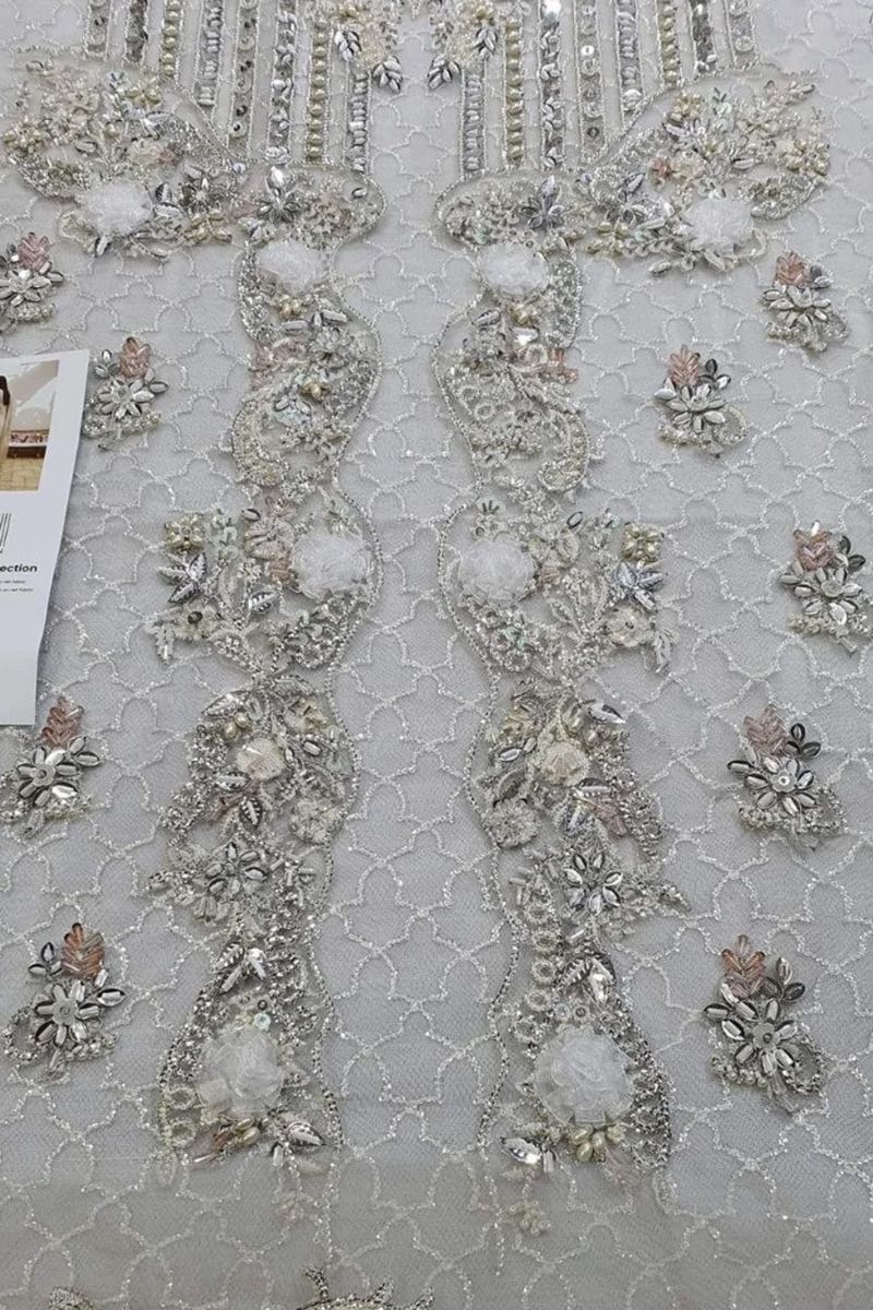 Embroidered and 3D hand embroidered front on net fabric