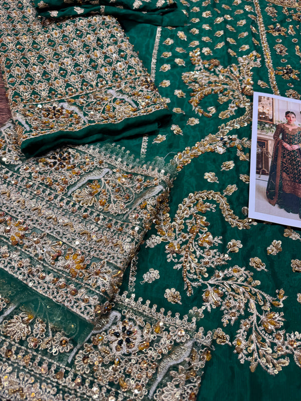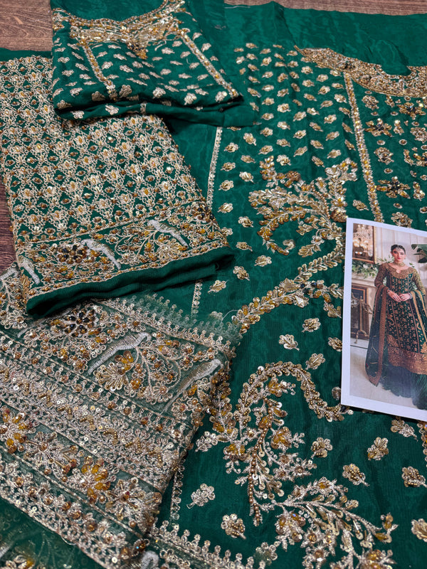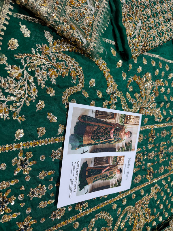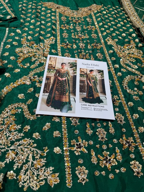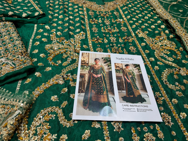 Introducing “Mehrunissa” by Nadia Ellahi, a captivating masterpiece from Hoor Fashion PK. Inspired by timeless elegance, this collection embodies the perfect fusion of traditional craftsmanship and contemporary style.