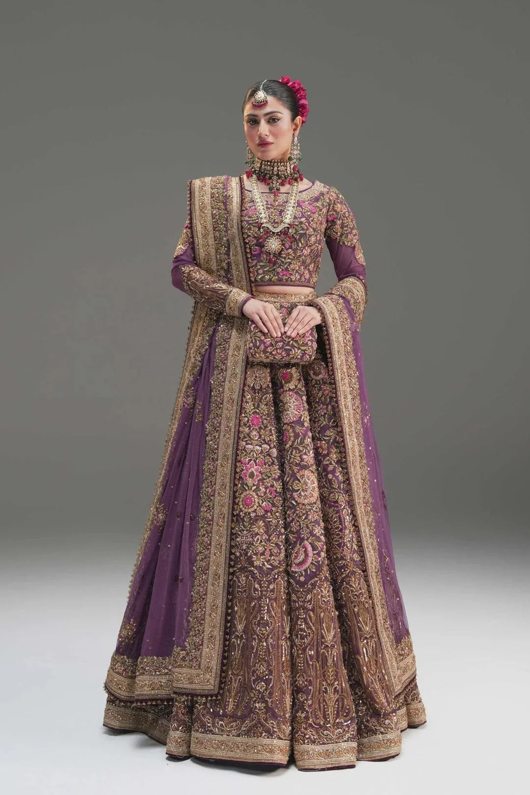 A timeless symphony of grace and tradition, Mirbail captivates with its exquisite wine net lehenga choli, featuring a structured corset and adorned with intricate embroidery and handwork embellishments. Paired with an ethereal net dupatta with a beautifully embellished border, this ensemble is the epitome of regal elegance.