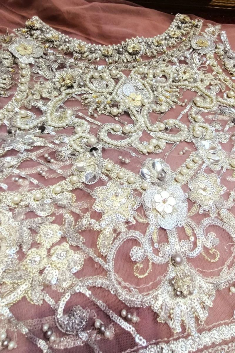 SLEEVES : Bareeze Net With Embroidery Of Sequence,Tilla, Resham & Thread. Wide Embroidery Patch For Sleeves