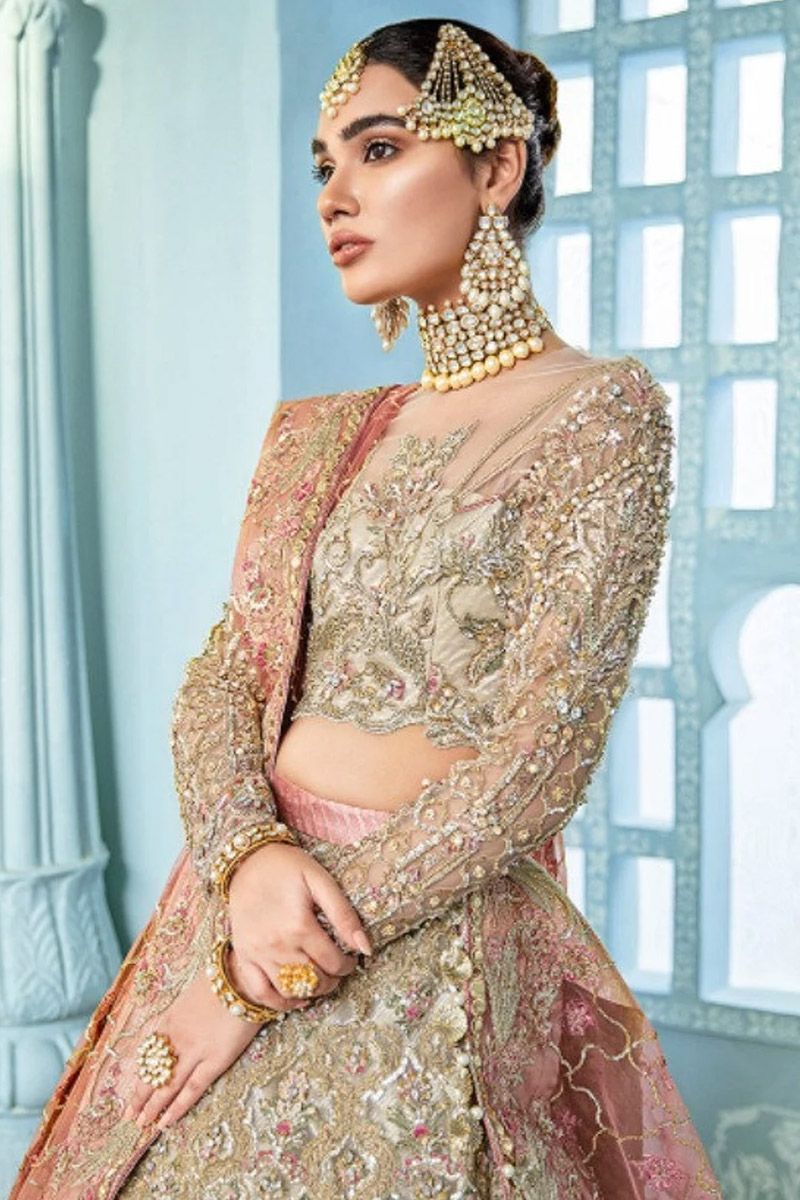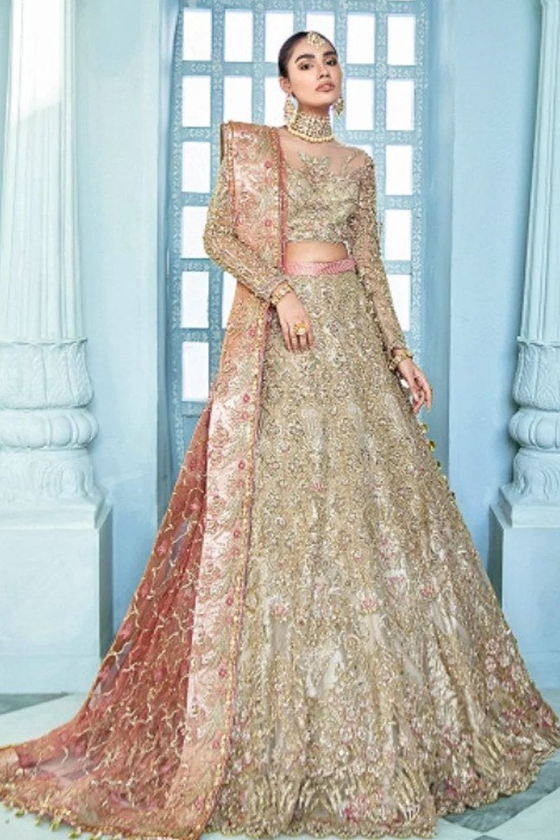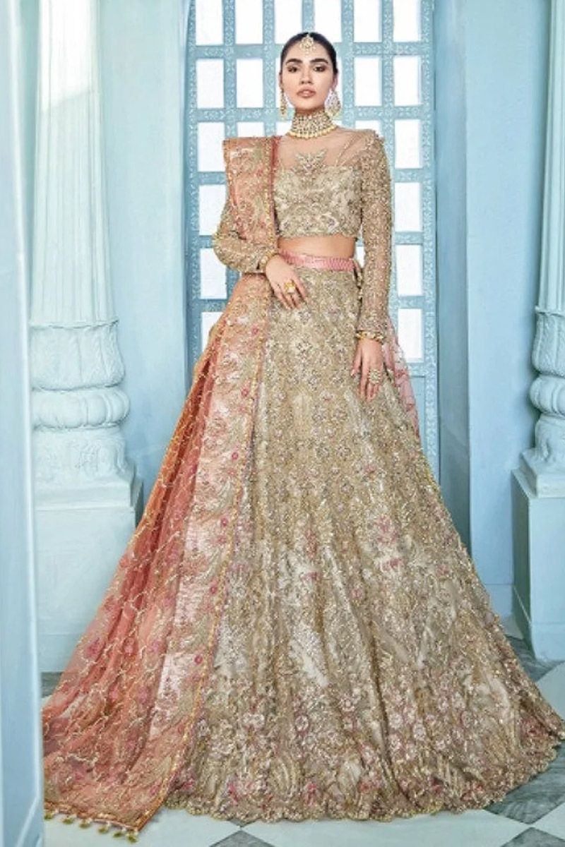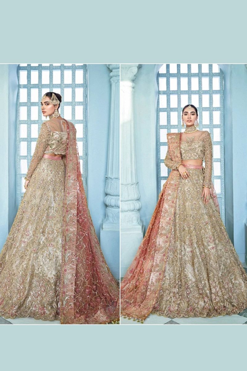 bareeze net embroidery hand made lehenga front