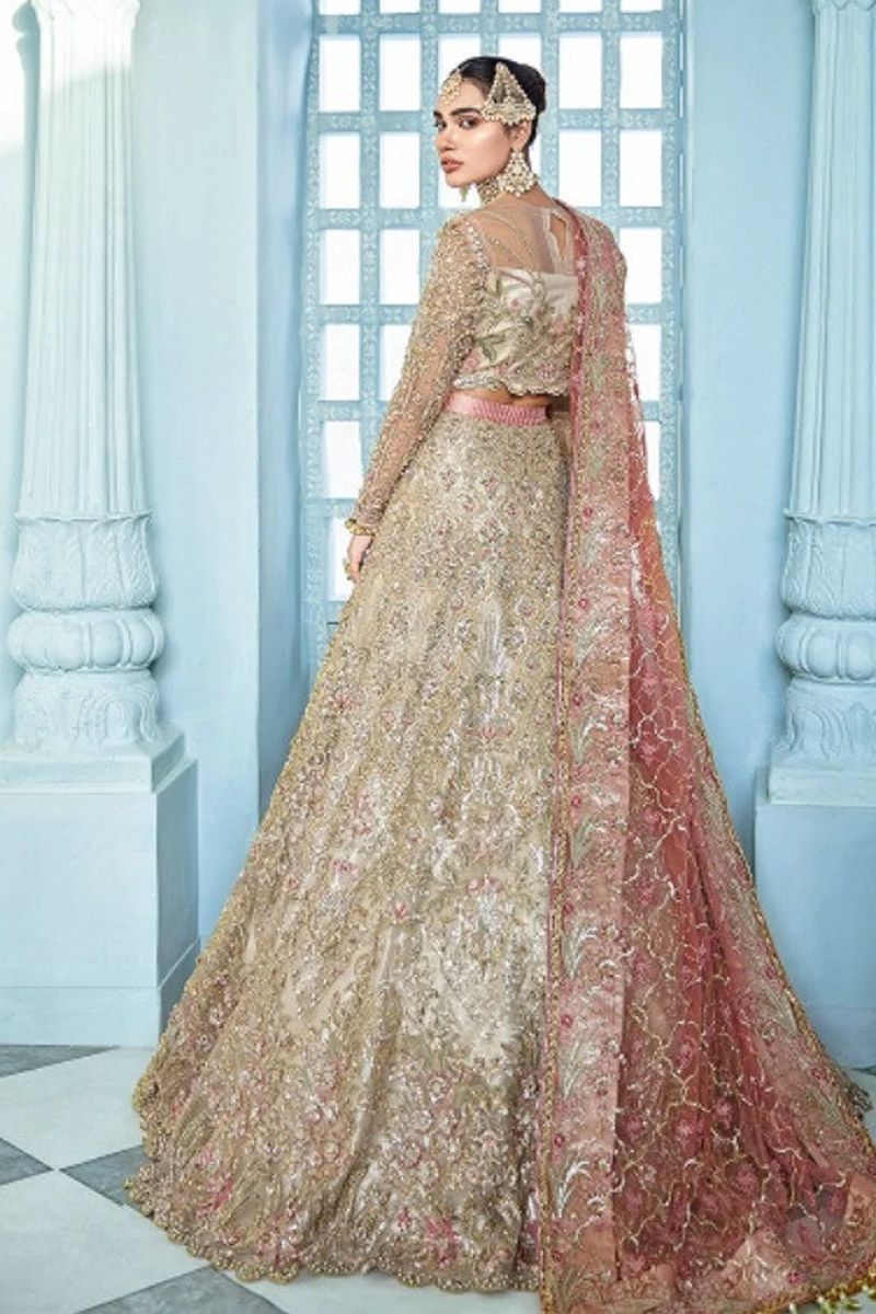 bareeze net embroidery lehenga back