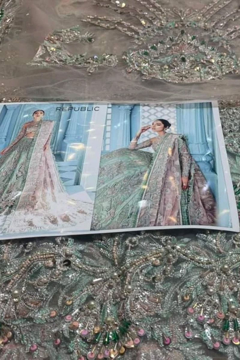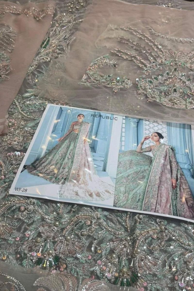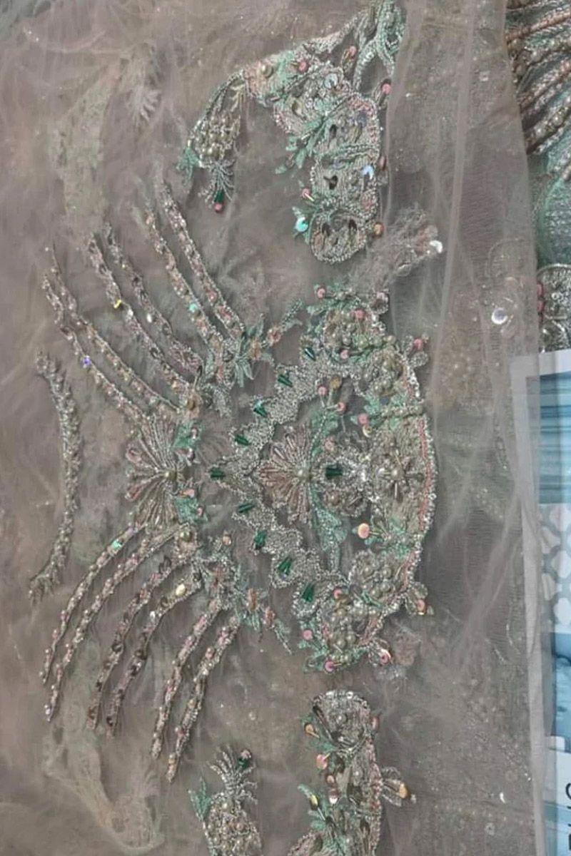 Model pictures just for references you will get the dress according to the open fabric pictures or video, color and embroidery with all embellishment